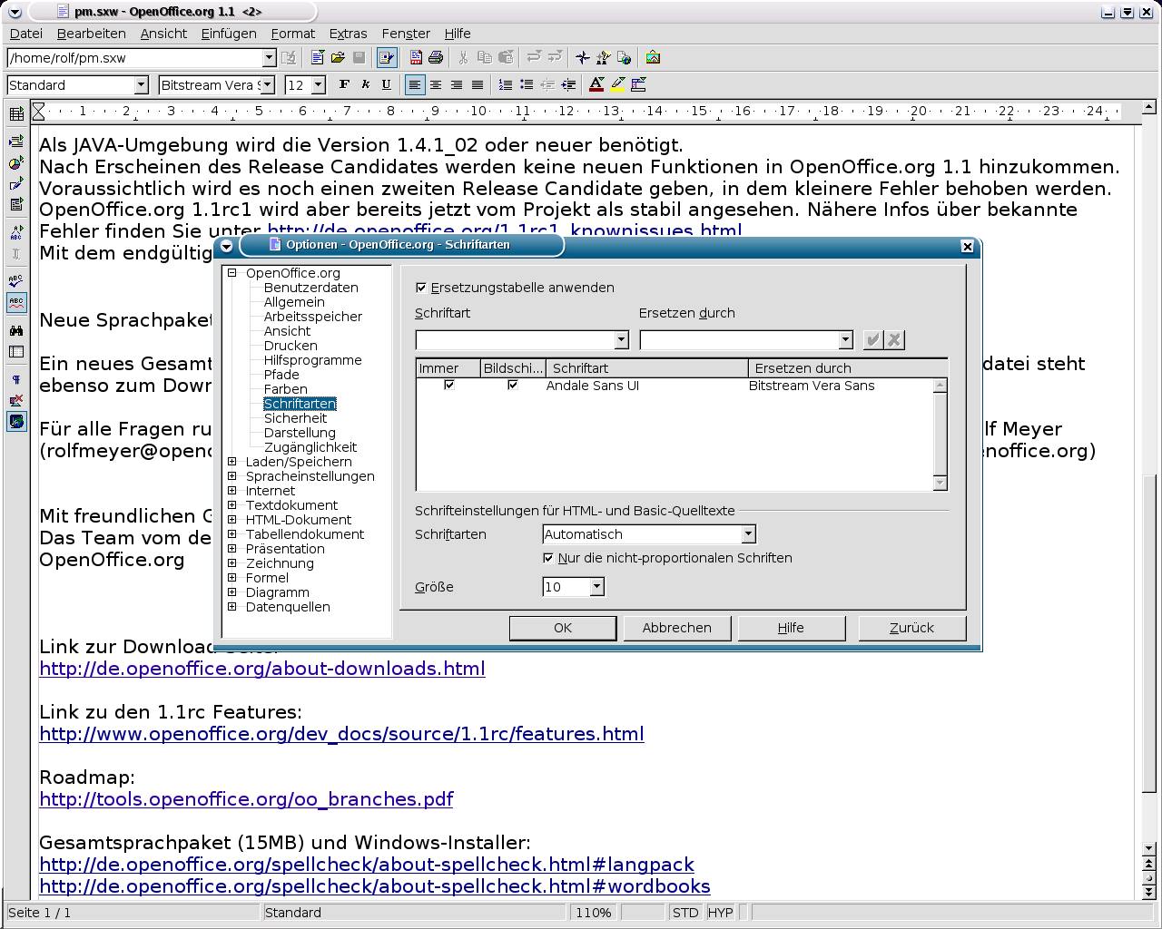 Screenshots - OpenOffice.org 1.1 - Bitstream-Vera -- eine mitgelieferte Schriftart